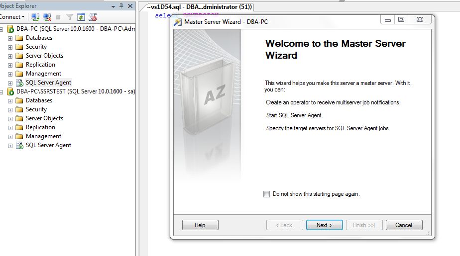 - Above Wizard will help you to make it master server.With the help of this server you can make jobs and maintenance plan for multiple servers plus notification alerts as well.