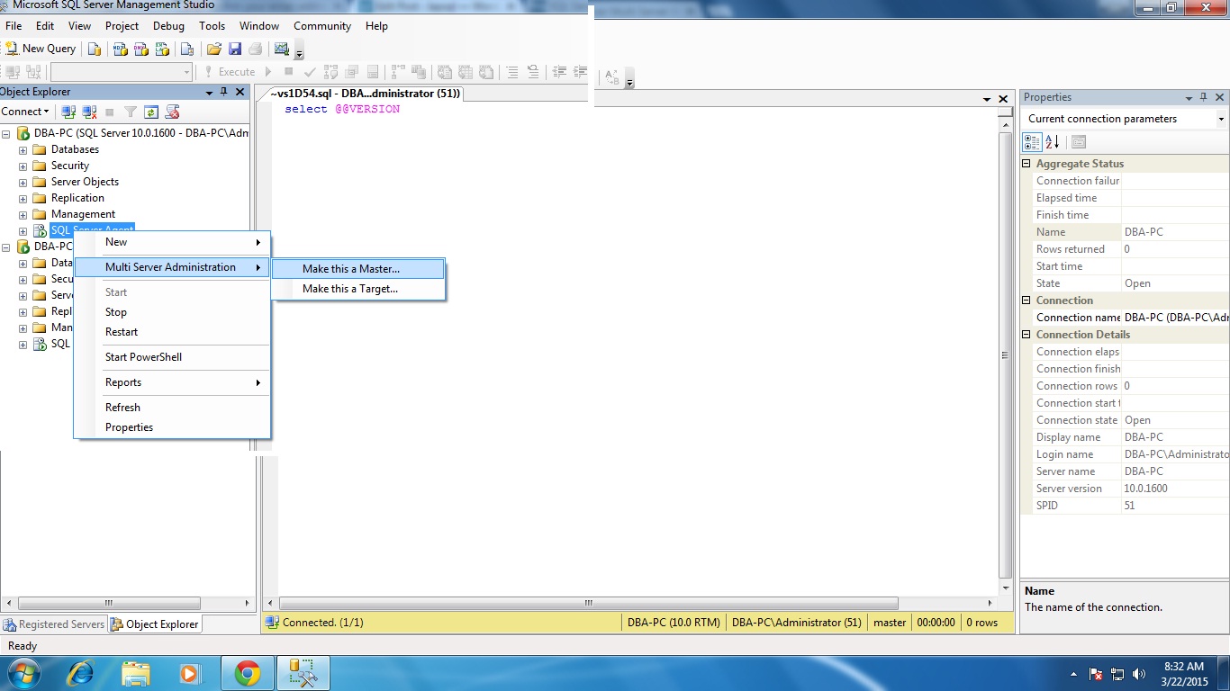 - Now Connect the SSMS and make one server as a Master Multi server administrator
