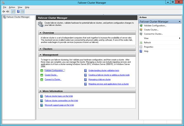 Now go to Cluster Failover manager and click on Validate Configuration from the action menu in Failover Cluster Manager MMC.