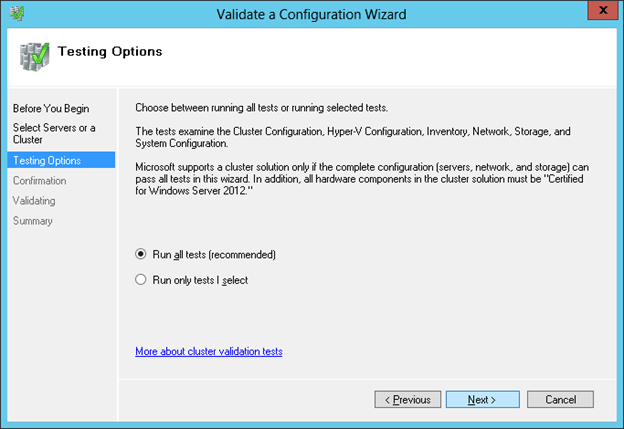 Click next once you select the server names and choose runs all tests as shown in figure below.